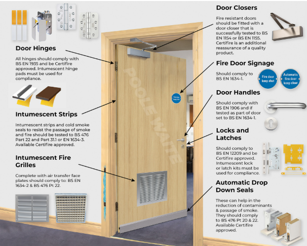 Every certified fire door must include three critical hardware components: