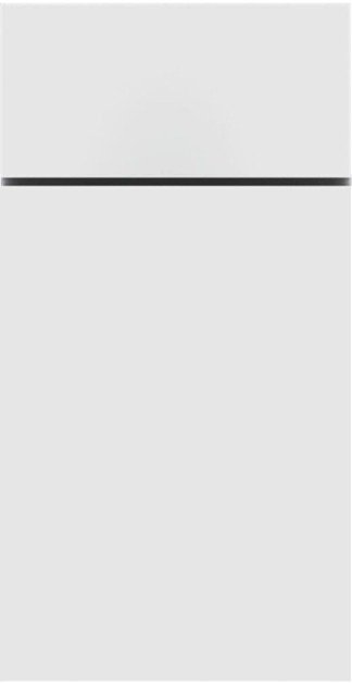 Doors and drawers fully cover the cabinet frame. Sleek, modern look.
